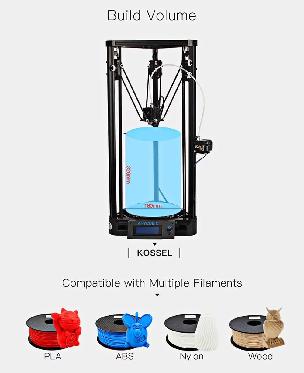 Delta structure allows for larger print sizes. Is the anycubic kossel upgraded pulley version 3d printer the ideal intro printer for you? Comes unassembled with detailed instructions.